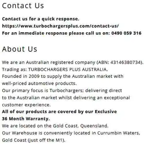 TURBOCHARGER WARRANTY: 36 MONTHS